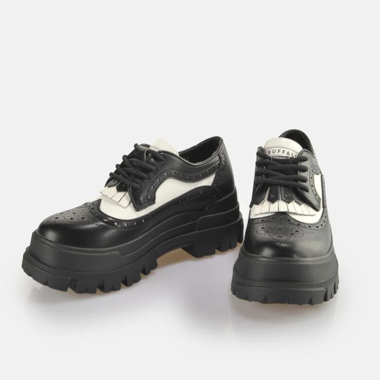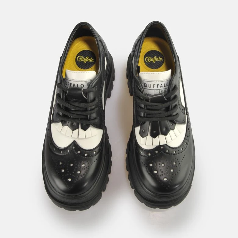 Werde mit dem chunky Aspha Brogue Halbschuh zum absoluten Headturner. Der vegane Klassiker kommt in einem shiny Schwarz und weißen Highlights. Dazu sitzt er auf einer profilierten Laufsohle und sorgt für zuverlässigen Grip. Ein Wild Western Look wird mit coolen Details zu einem einzigartigen Style kombiniert. Die herausnehmbare Decksohle aus Memory Foam sorgt dabei für einen weichen Walk.