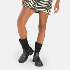 Mit dem Aspha Chain Ankle-Boot zeigst Du, dass Du modisch alle Ketten sprengst. Das All-Black-Design und die chunky Plateausohle machen diesen Combat Boot zum absoluten Headturner. Neben cool kann der heiße Treter auch glamourös, was die plakative Gliederkette in Silber gekonnt zur Schau stellt. Ein Must-have für stilbewusste Rockergirls!