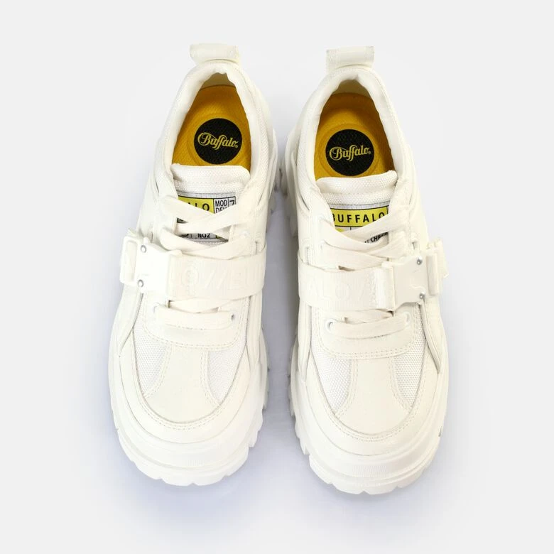 Ob Business oder Casual – unser veganer Aspha Com Lo Halbschuh lässt sich dank seiner chunky Silhouette perfekt zu jedem Outfit kombinieren. Kreative Elemente in cleanem Weiß sorgen für ein verspieltes Design dieses Halbschuhs. Eine praktische Schnalle auf der Front sorgt zudem bei jedem Style für einen sicheren Halt. Genieße den Komfort unserer hochwertigen und herausnehmbaren Memory-Foam-Sohle.