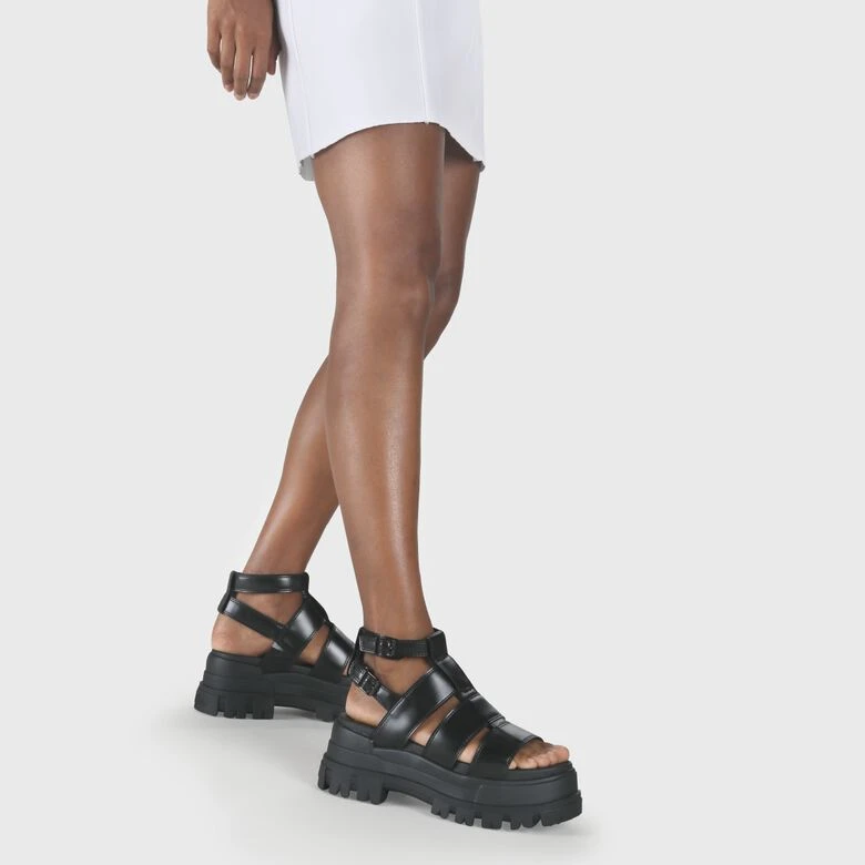 Like a goddess: Mit der Aspha GLD Plateau-Sandale trittst Du in den Fashion-Olymp ein. Eine dicke Außensohle sowie rockige Nappaleder-Optik verleihen dem klassischen Look der Römersandale ein edgy Update und lassen Dich göttinnengleich den Dancefloor erobern. In Deinem hottesten Club-Outfit traut sich niemand, sich modisch mit Dir zu messen.