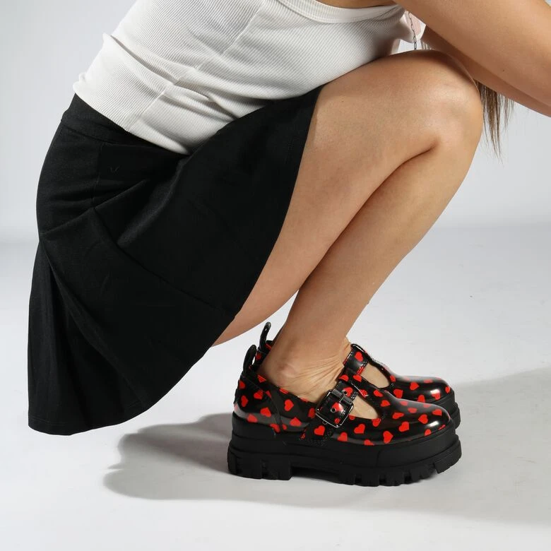 Entdecke mit dem Aspha Jane Heart Halbschuh einen modischen Lolita-Style. Der Halbschuh vereint süße Designelemente mit einer chunky Silhouette in einem aufregenden Farbkontrast. Verleihe Deinem Outfit mit diesem veganen Halbschuh den letzten Schliff. Dabei sorgt die weiche und herausnehmbare Decksohle aus Memory Foam für einen hohen Komfort.