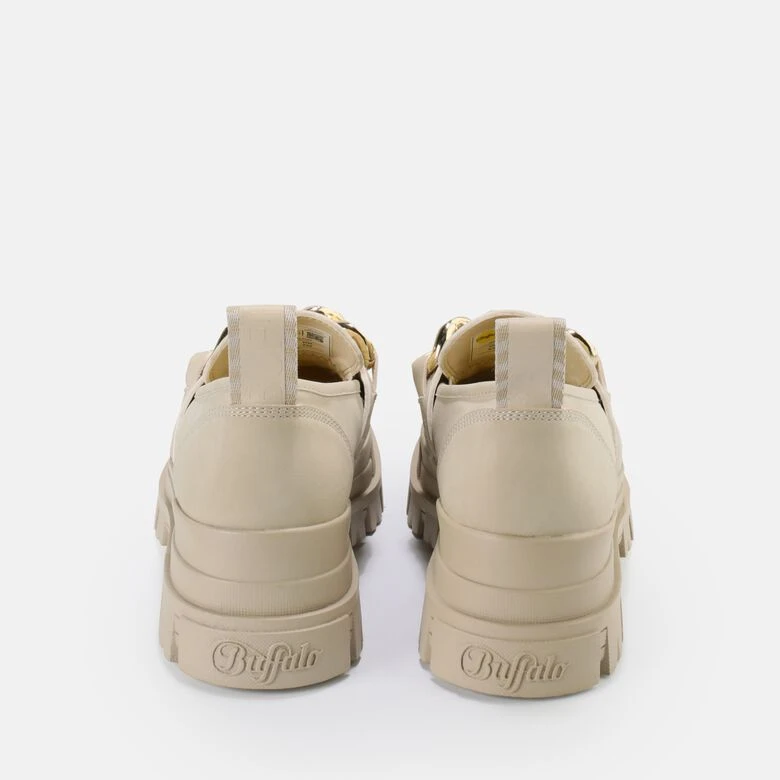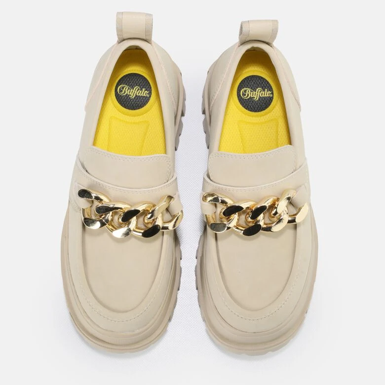 Nude-Töne sind der Trend der Stunde und so hat auch der Aspha Loafer Chain das Zeug zum It-Piece. In Creme gestaltet, bietet Dir dieser Schuh schier endlose Kombinationsmöglichkeiten. Die chunky Laufsohle mit tiefem Profil sorgt für den typischen Buffalo-Style, während das classy Upper Deinem neuen Allrounder einen Hauch zeitlose Eleganz verleiht.