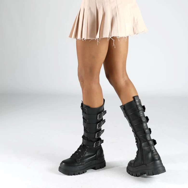 Bring ein einzigartiges Rock ’n‘ Roll-Feeling direkt in Deinen Schuhschrank. Der stylische Aspha ON FB Boot überzeugt durch ein rebellisches Design mit dunklen Schnallen an einem hohen Schaft. Entdecke individuelle Styles und modische Kombinationen, um den veganen Boot perfekt in Szene zu setzen. Dabei sorgt die herausnehmbare Sohle aus weichem Memory Foam für höchsten Komfort.