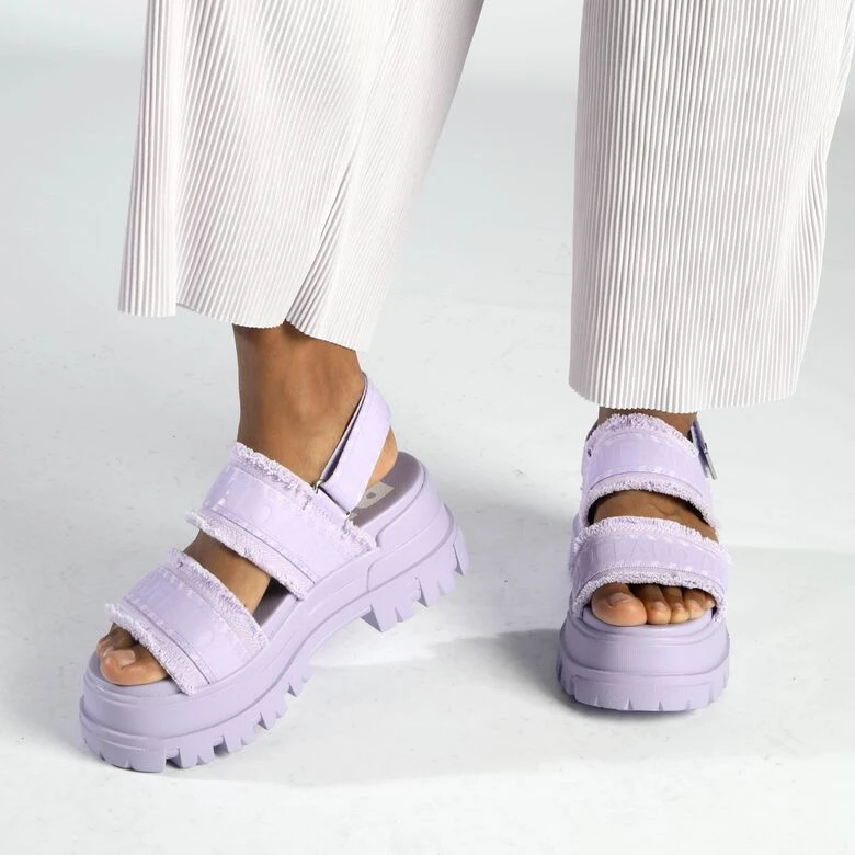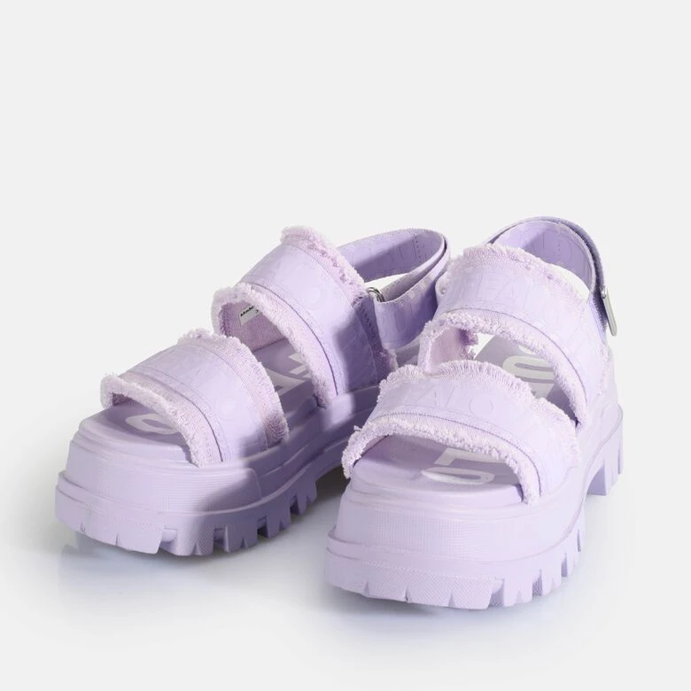 Bei der Aspha STR Plateau-Sandale verbinden sich komfortables Obermaterial aus veganem Canvas und auffällige Branding-Motive zu einem unverwechselbaren Style. Für Komfort und perfekten Sitz sorgen die verstellbaren Klettverschlüsse. Die angesagte Sommerfarbe Lavendel verleiht der kultigen Sandale einen Hauch von Eleganz.