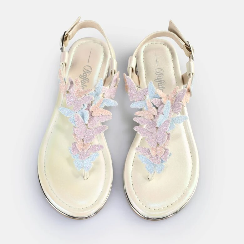 Mache Deinen Sommer-Look perfekt. Zierliche Schmetterlinge zieren die zarten Riemchen der Capri Butterfly Sandale. Das tierfreie Material ist ultraleicht und besonders angenehm. Die seitliche Schnalle sowie die Memory Foam-Sohle sorgen zudem für einen weichen und sicheren Stand. Kombiniere die Sandale zu Deinem sommerlichen Look und sorge für eine echte Girly-Vibes.