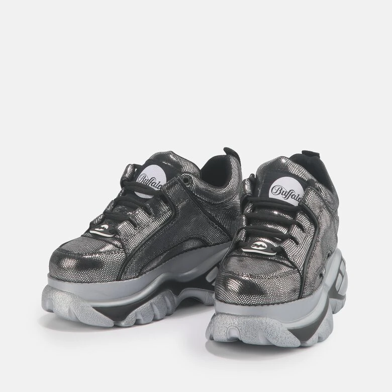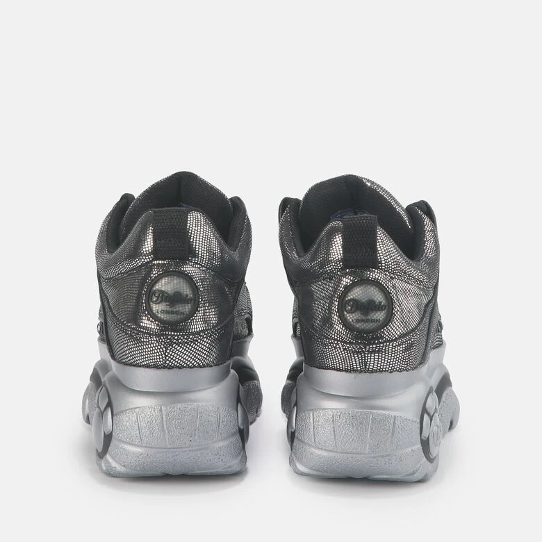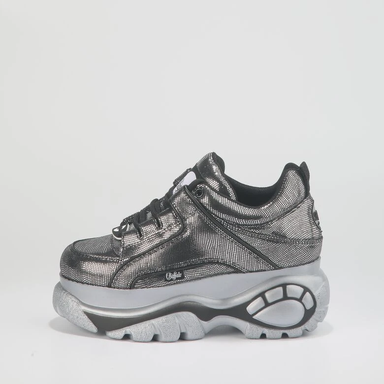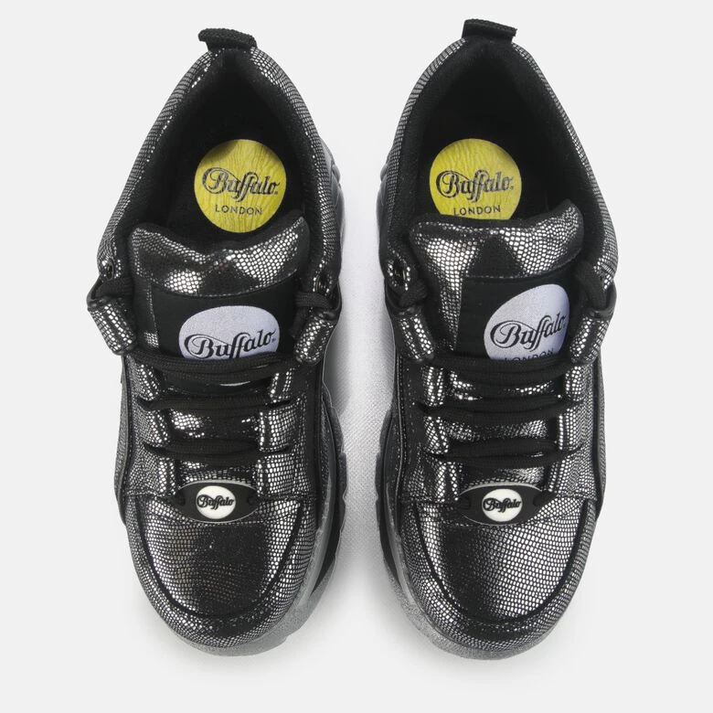 Shine bright like… Eidechsen? Der Classic Sneaker Low beweist, dass nicht immer der Diamant am Finger, sondern auch der stylishe Schuh funkeln darf. Der wilde Eidechsen-Print im schwarzen und silbernen Glitter-Look tuned das hochwertige Kalbsleder, das durch die shiny Plateausohle perfekt in Szene gesetzt wird.