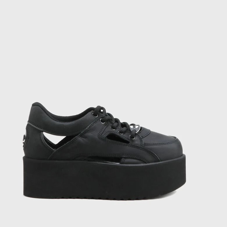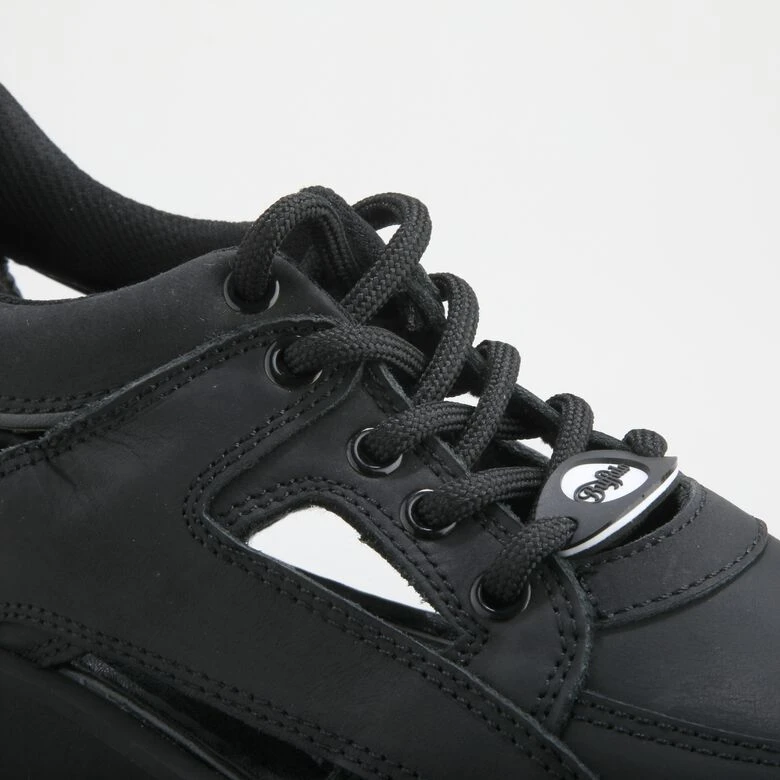 Sein disruptives Aussehen setzt neue Maßstäbe in Sachen Footwear: Der Buffalo Classics Tower Cut Outs „schwarz“ Sneaker gehört zu der Reimage-Kollektion der einstigen Klassikern aus den 90ern und kommt mit einem geölten Nubukleder-Obermaterial, lateralen Cut-Outs und einer ebenmäßigen, 6 cm hohen Tower-Plateausohle.