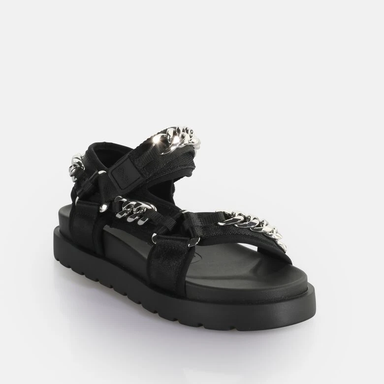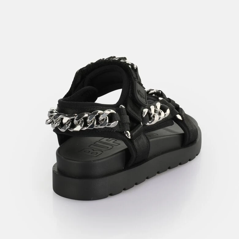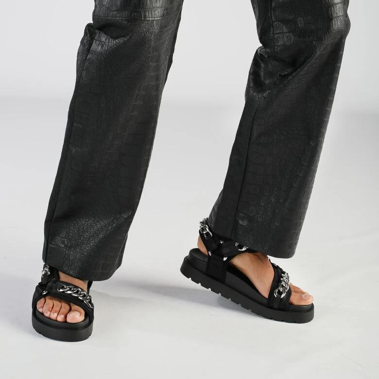 Rocke Deinen Look mit der neuen Eve Track C Plateau Pool-Slide und ziehe damit alle Blicke auf Dich. Das vegane Material kommt in klassischem Schwarz und wird mit den silbernen Elementen zu einem echten Highlight. Dabei sorgen praktische Klettverschlüsse für eine optimale Passform bei diesem Leichtgewicht. Zeige mit diesen Slides Deine rebellische Seite.