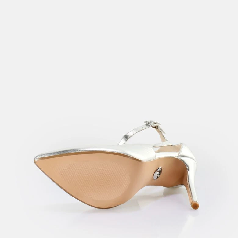 Du bist ein wahres Party-Girl? Dann präsentiere Dich in dem stylischen Juliet Sling Pump Pump. Mit dem dünnen Stiletto-Absatz und dem feinen Riemchen am Knöchel schaffst Du mir diesen Pumps einen glamourösen Look. Zudem sorgt das hochglänzende Silber auf veganem Nappaleder für einen einzigartigen Style. Dank der Memory Foam-Sohle und einer angenehmen Leichtigkeit profitierst Du zudem von einem hohen Komfort.