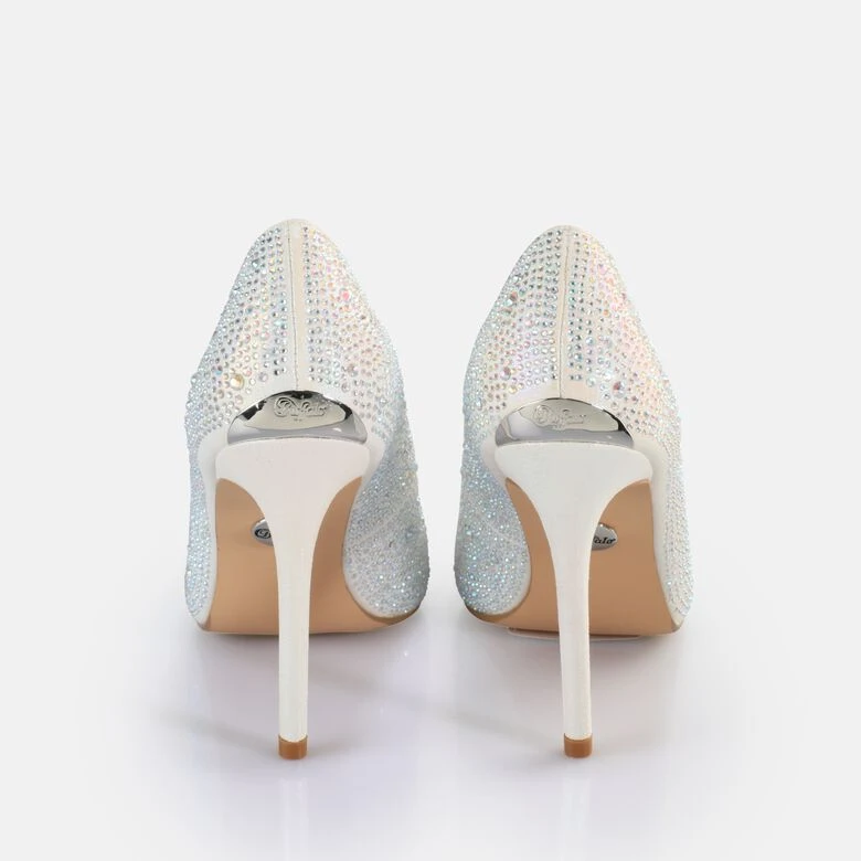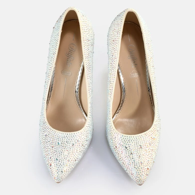 Du liebst glitzernde Auftritte? Dann ist der Juliette Ice Pump genau der richtige Schuh für Dich. Schlicht-elegante Form trifft hier auf eine mit Glitzerelementen glänzend bestückte, weiße Oberfläche. Der elf Zentimeter hohe, schmale Absatz rundet das exklusive Erscheinungsbild dieser veganen Pumps perfekt ab. Der Treter ist ein treuer Begleiter z. B. zu Deinem Auftritt im eleganten Abendkleid. Selbst zu Deinen hautengen Skinny-Hosen macht er Dich zur Königin der Nacht auf der nächsten Party. Dank seiner Leichtigkeit und der komfortablen Ausstattung mit Memory-Schaum spürst Du diesen Schuh kaum.