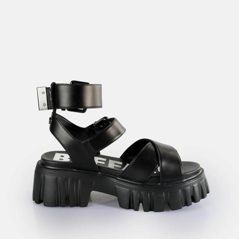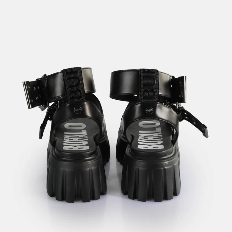 Du bist auf der Suche nach einem echten Statement-Stück zu Deinem Outfit? Unsere Lion Choker Plateau-Sandale mit dem sieben Zentimeter hohen Absatz ist genau, was Du suchst. Ganz in Schwarz verbindet die Plateau-Sandale mit den Cross Straps und dem reizvollen Fessel-Riemchen Eleganz und rockiges Design. Dabei ist der vegane Schuh extrem leicht und verwöhnt Dich mit seinem hohen Tragekomfort. Die Riemen sind mit Dornschließen versehen, sodass Du sie perfekt auf Deine Passform einstellen kannst.