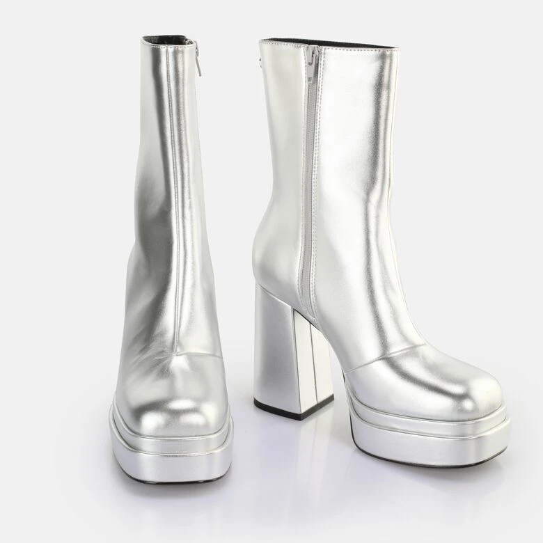 Das Must-have für außergewöhnliche Looks. Der May Zip Boot Mid Ankle-Boot kommt in einem glänzenden Silber und ermöglicht kreative Styles. Dier vegane Schuh überzeugt mit einer weichen Memory Foam-Innensohle und einem breiten Blockabsatz. Geschlossen wird der Ankle-Boot mit einem praktischen Reißverschluss. Style coole Kleider oder Röcke zu Deinen neuen Boots.