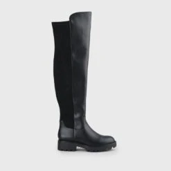 Mit dem schwarzen Mireya Overknee-Stiefel wirst Du zu einer echten Fashionista! Sein unifarbenes Design und der 4,2 cm hohe Blockabsatz machen ihn zum perfekten Accessoire für coole Everyday-Styles oder den großen Auftritt auf dem Dancefloor.