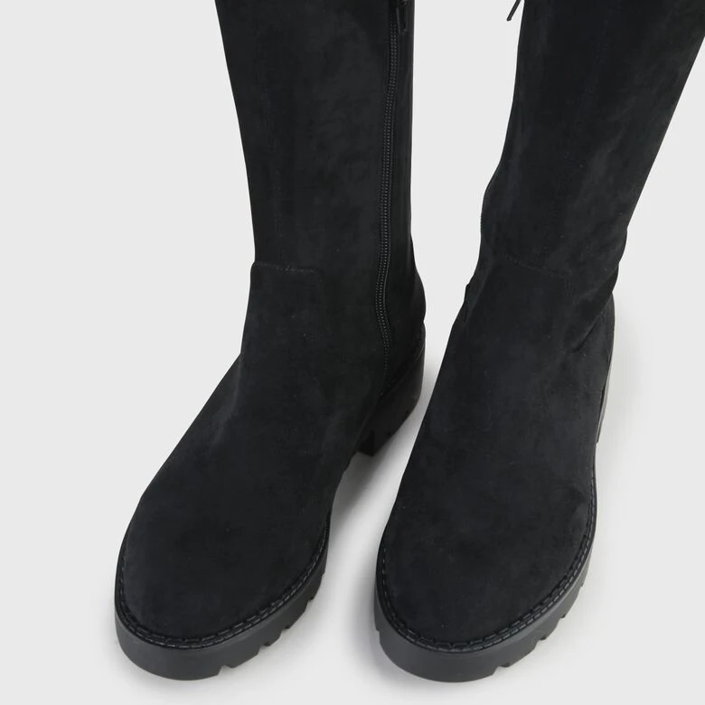 Ein trendstarkes Piece für jeden Tag findest Du in dem schwarzen Myrna Boot. Er überzeugt mit einem monochromen Design. Kombiniere ihn zu Röhrenjeans, Bluse und schwarzer Lederjacke für einen stylishen Biker-Look. Die attraktive Overknee-Länge streckt zudem die Silhouette und sorgt für einen femininen Auftritt.