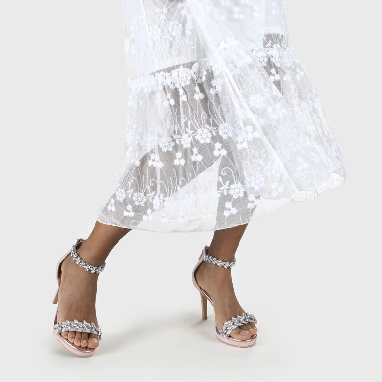 In der traumhaften Pia Sandalette erscheinst Du als Braut wie aus einem Märchen entstiegen. Neben dem Satin in shiny Pink begeistern die beiden Riemen mit funkelnder Kristallbesetzung. Besonders in Kombi mit Prinzessinnenkleidern beweist der hohe Schuh seinen ebenso hohen Style-Faktor, der Schneewittchen noch blasser aussehen lässt.