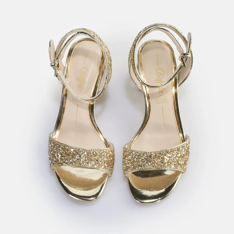 Eine dezent glänzende Note – die Rainelle Sandalette überzeugt mit einem einzigartigen Design in edlem Gold. Das Modell verfügt über einen angenehmen Blockabsatz und softe Riemchen. Kombiniert mit der Memory Foam-Sohle wird die ultraleichte Sandalette zu einem beliebten Begleiter für besondere Events. Style unsere vegane Rainelle zu sommerlichen Abendlooks und versprühe eine ordentliche Portion Glamour.