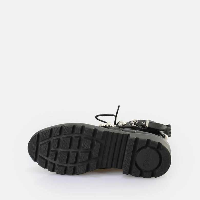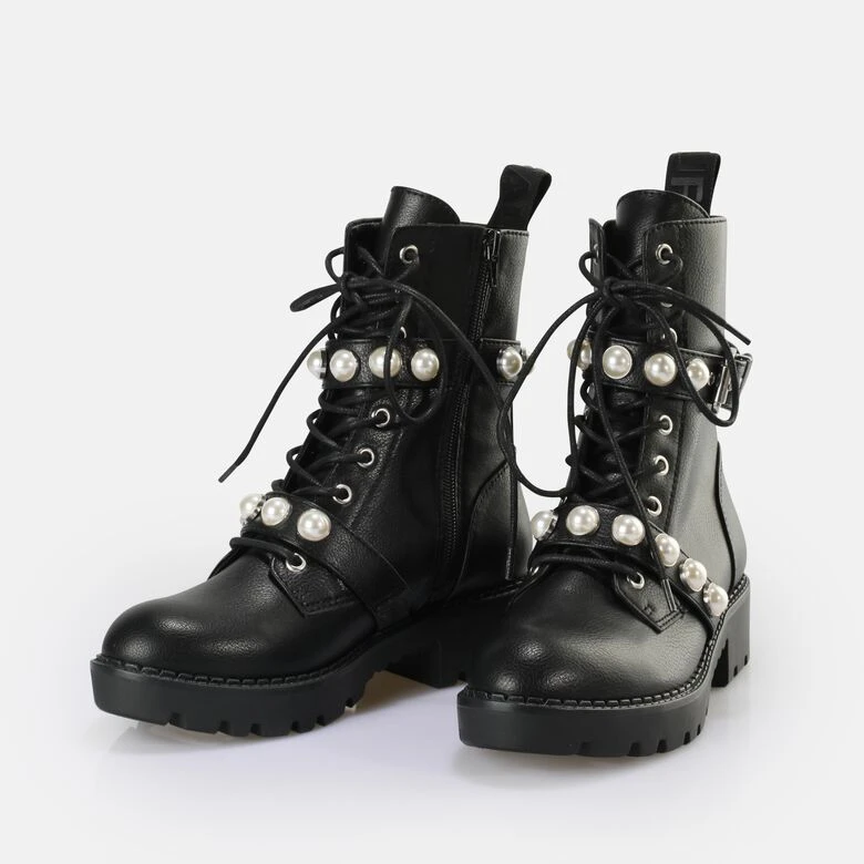 Ein Eyecatcher in geheimnisvollem Schwarz. Der ursprüngliche Stil des Bikerboots und der mit femininen Perlen besetzte Riemen bilden einen spannenden Gegensatz, der sofort ins Auge springt. Die Schnürstiefel mit ausgeprägter Sohle und niedrigem Absatz passen zum Kleinen Schwarzen ebenso wie zu rockigen Lederhosen. Der Wave Pearl Laceup MID Boot ist nicht nur ein optischer Leckerbissen, sondern auch ein komfortables Highlight für Deine Füße. Weiches veganes Nappa-Material ist gefüttert mit einem Polster aus Memory Schaum und schmiegt sich perfekt an Deine Füße an.